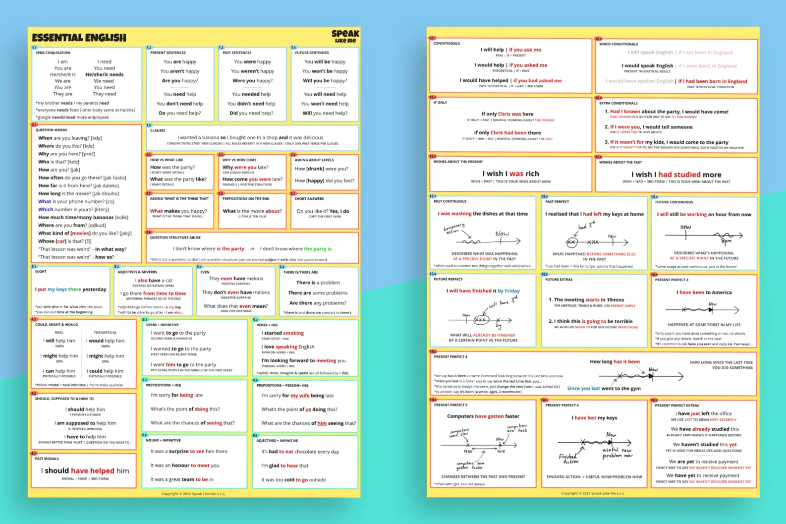 Přehled veškeré anglické gramatiky vytvořené speciálně pro Čechy.